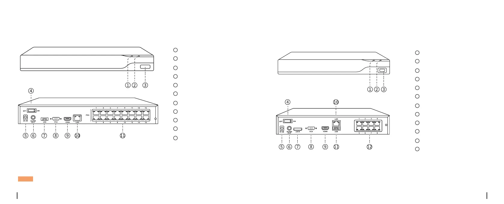 Power LED: Solid green to indicate the NVR is powered on.