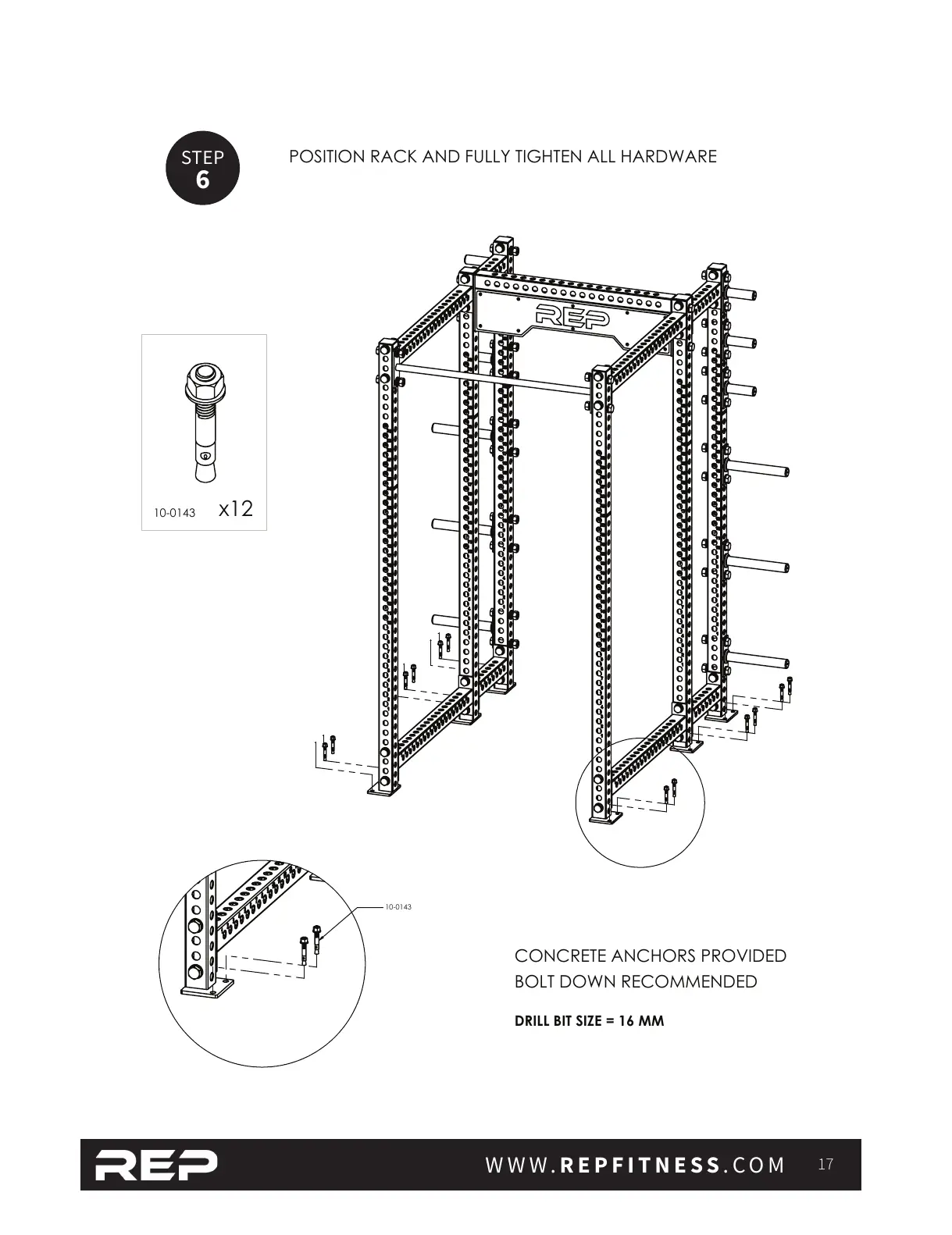 POSITION RACK AND FULLY TIGHTEN ALL HARDWARE