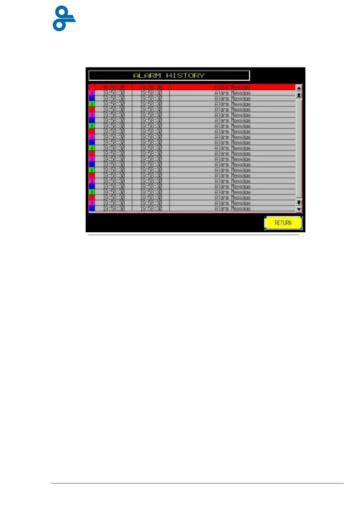 This menu is accessed by pressing the ‘ALARMS’ button in the main menu (see Figure 4.40)