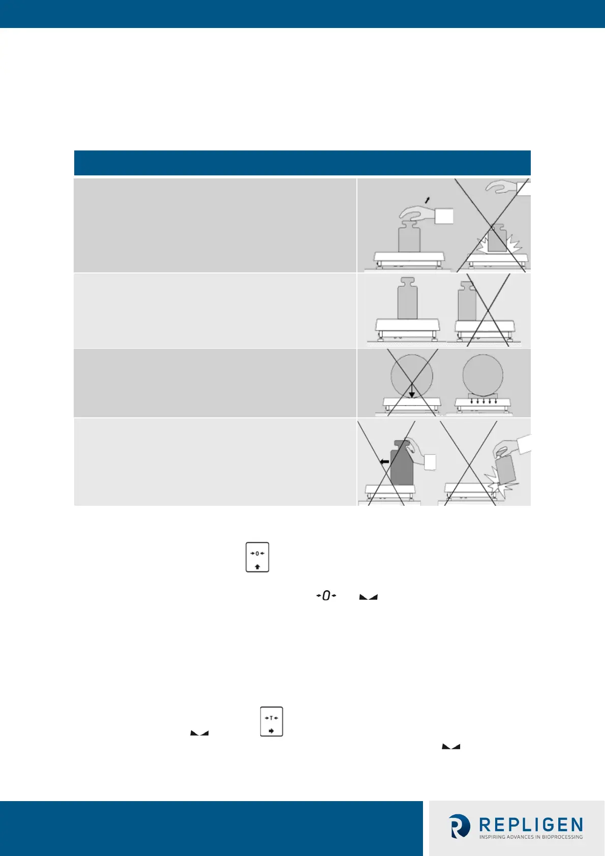 2. With the zeroing of the scale, the pictograms and are displayed. The scale can only