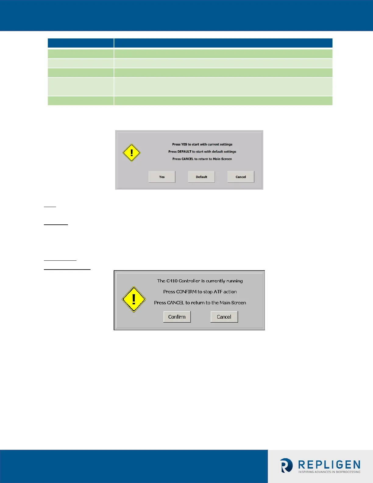When Starting the Diaphragm Pump, the following dialog box will appear: