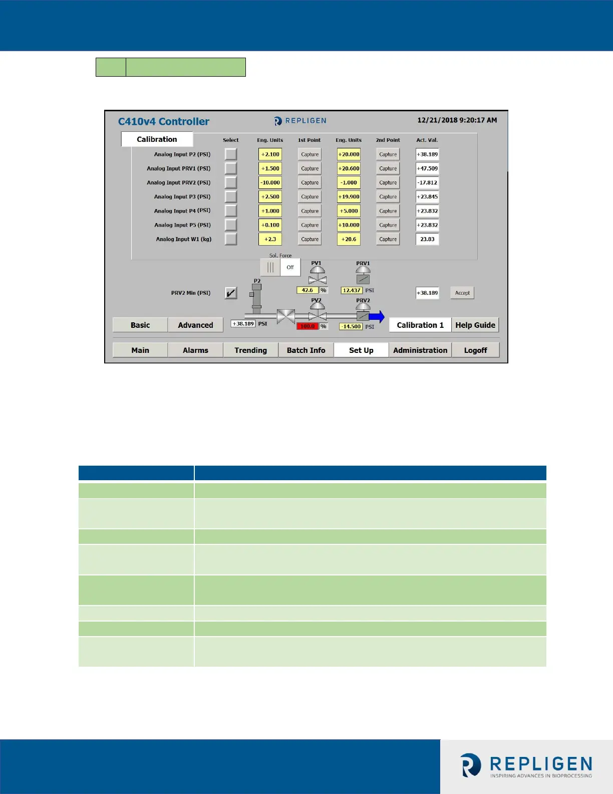 Analog Input Configuration / Calibration: Only accessible to the Administrator and Engineer