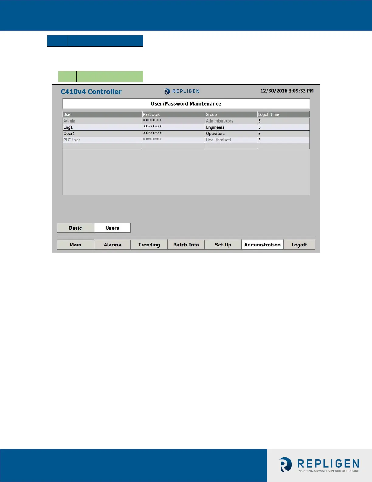 reached, the current user will automatically be logged off. Access to other screens will prompt