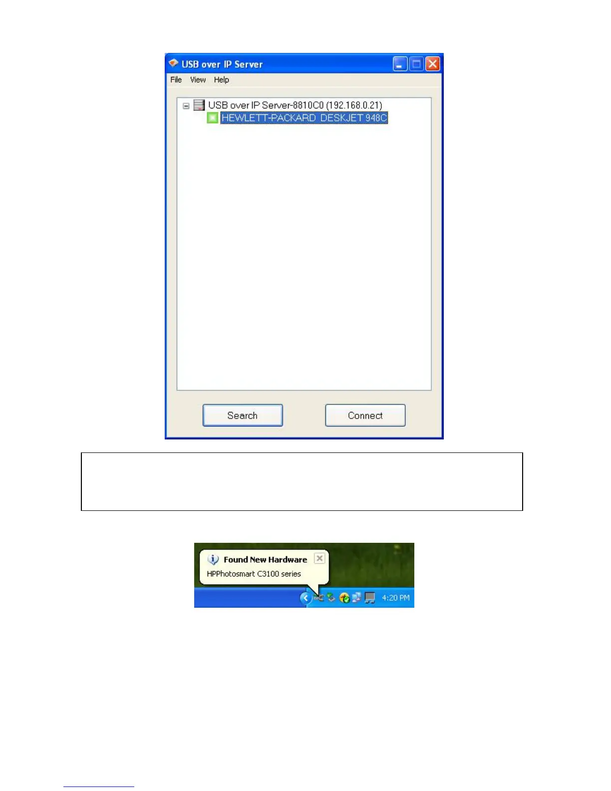 printer to the USB port of the Network USB over IP Server. Also, please make sure the