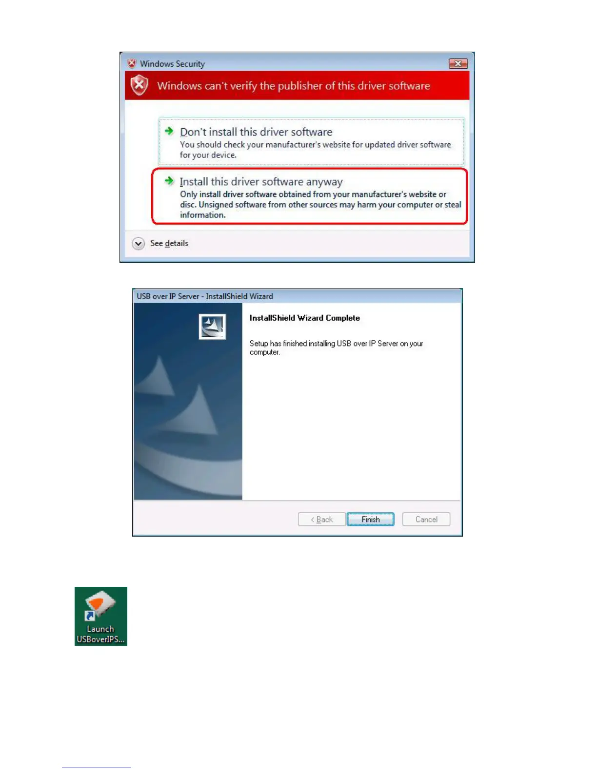 5. Once the installation process has been completed, an “Launch USBoverIP Server” icon