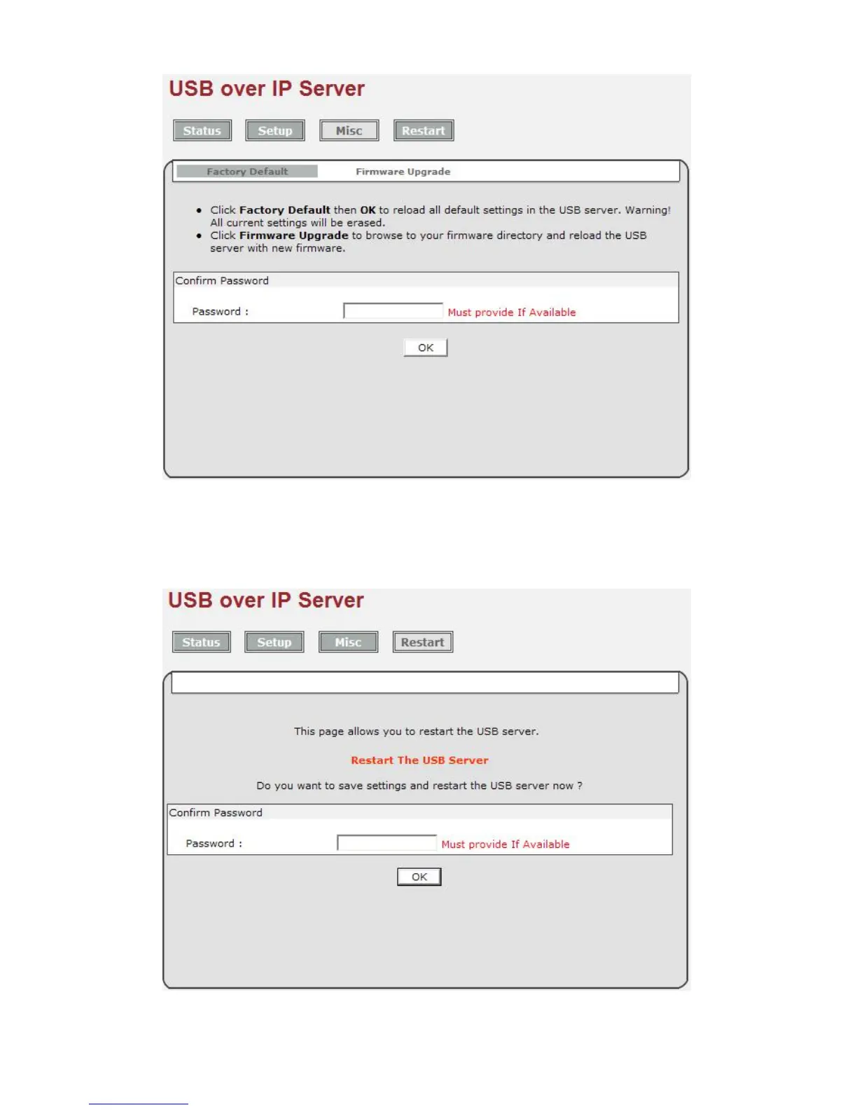The Restart window will allow you to reboot the Network USB over IP Server.