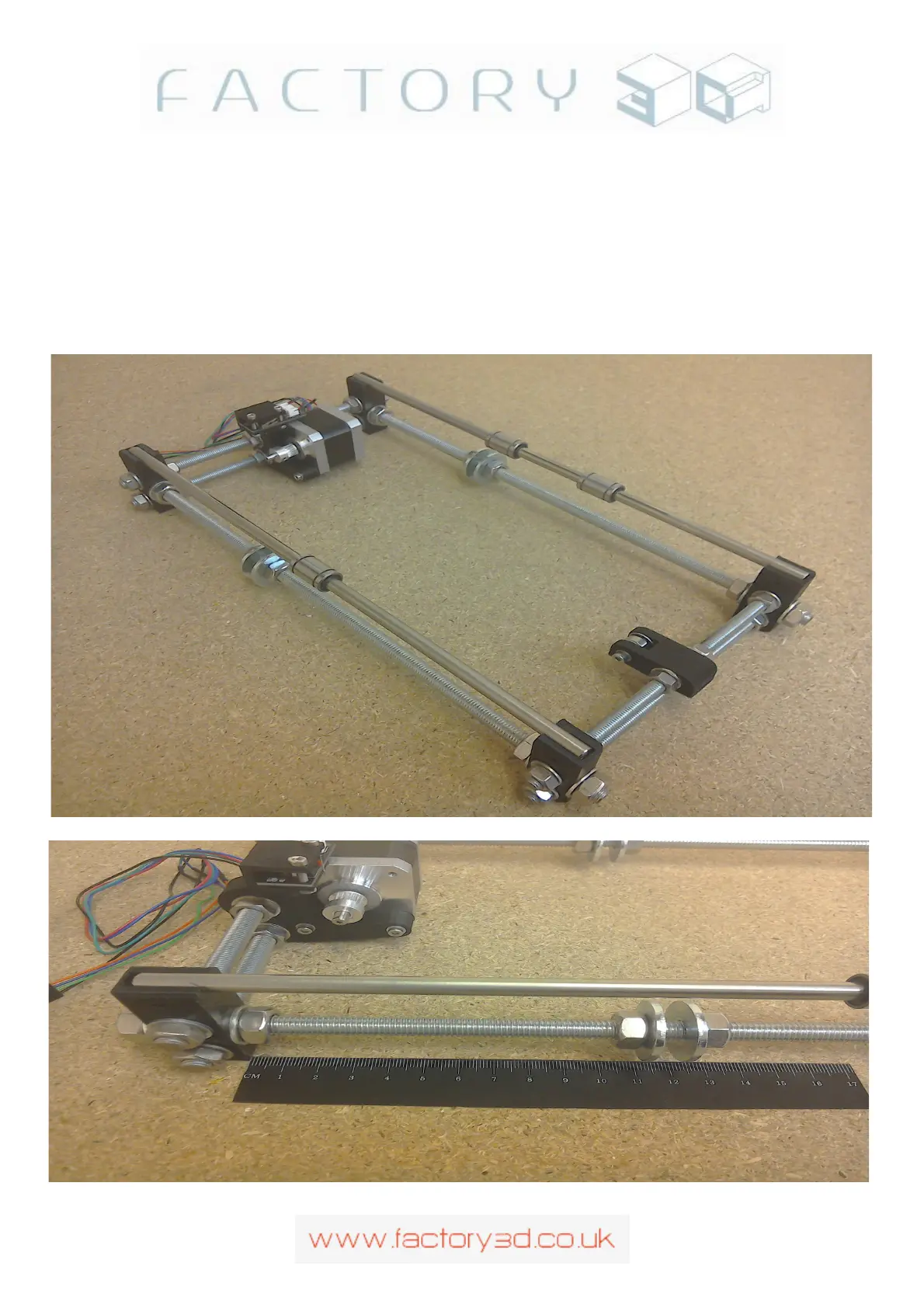 threaded rod) , motor at the back, single bearing on the left hand smooth rod and two bearings on the right hand