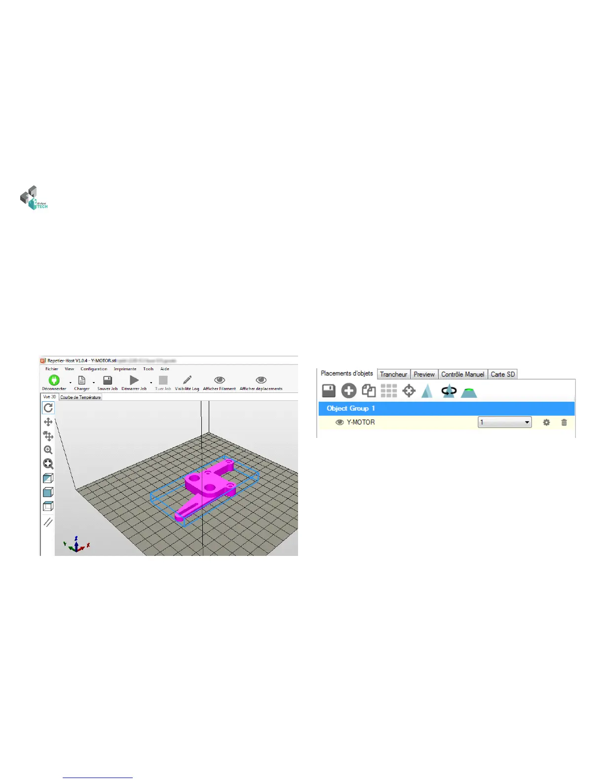 We will rst choose a 3D model to print. We suggest you to start with a simple object like the «Y Motor», with a fairly large plate surface to