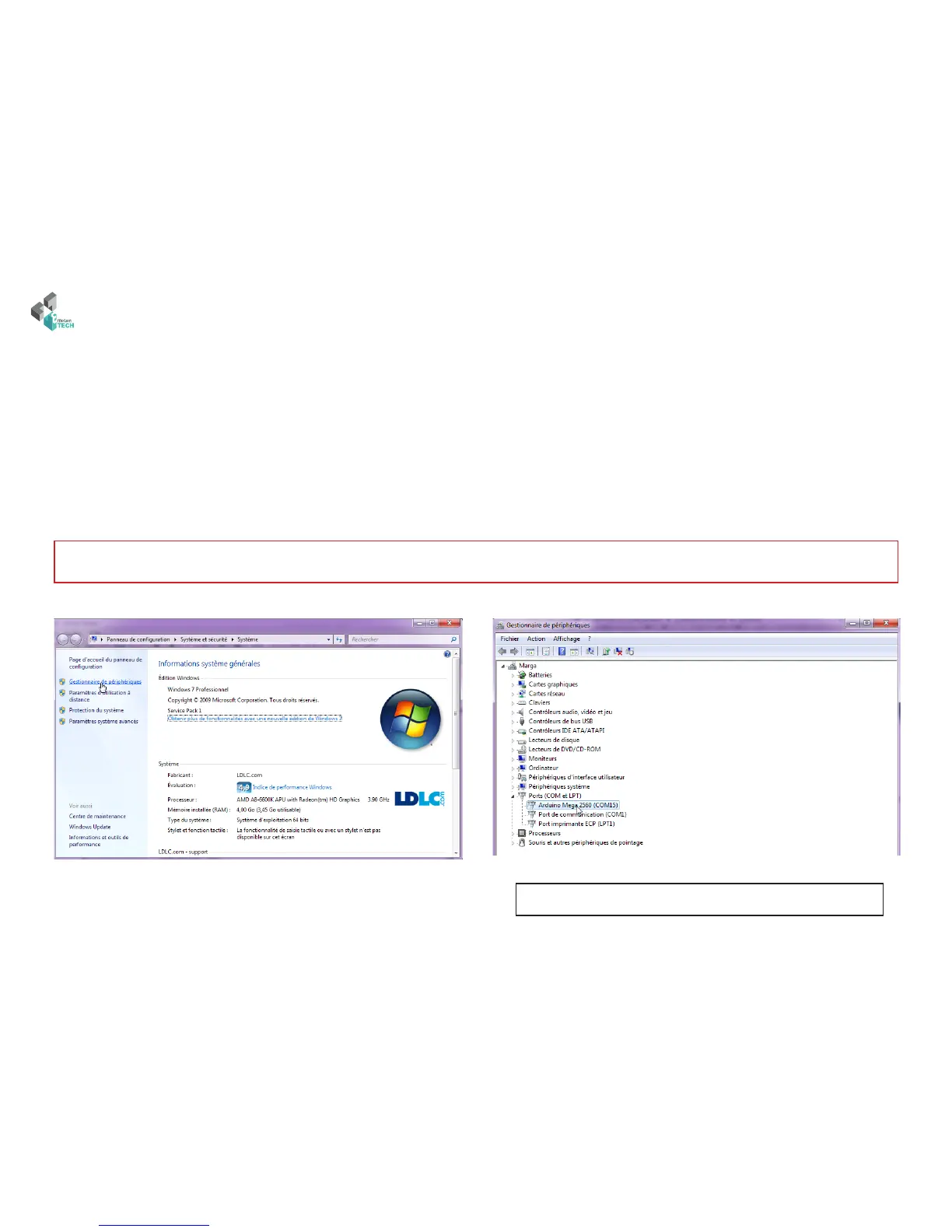 • Check if the board is identied by your computer. You can to push on « Windows + Pause » -or go to your compute setup-, and on « Device manager »