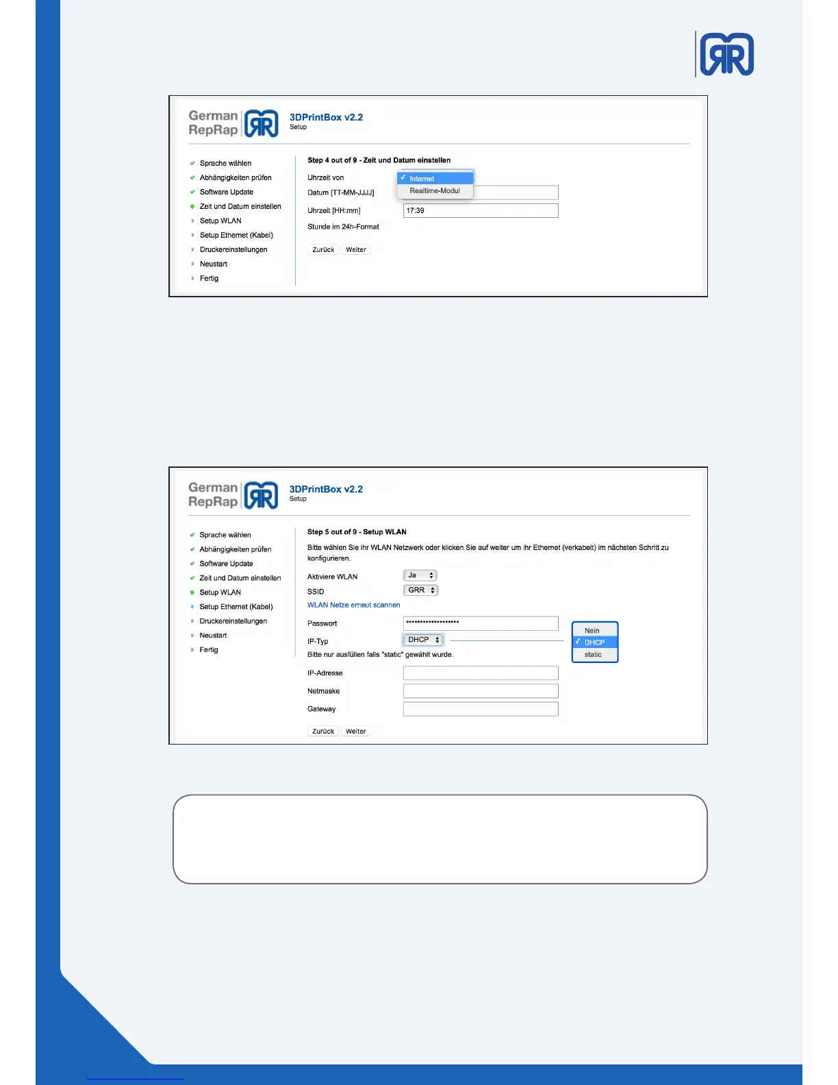 wireless networks displayed. Here you can also choose between a static ip address or the use of DHCP.