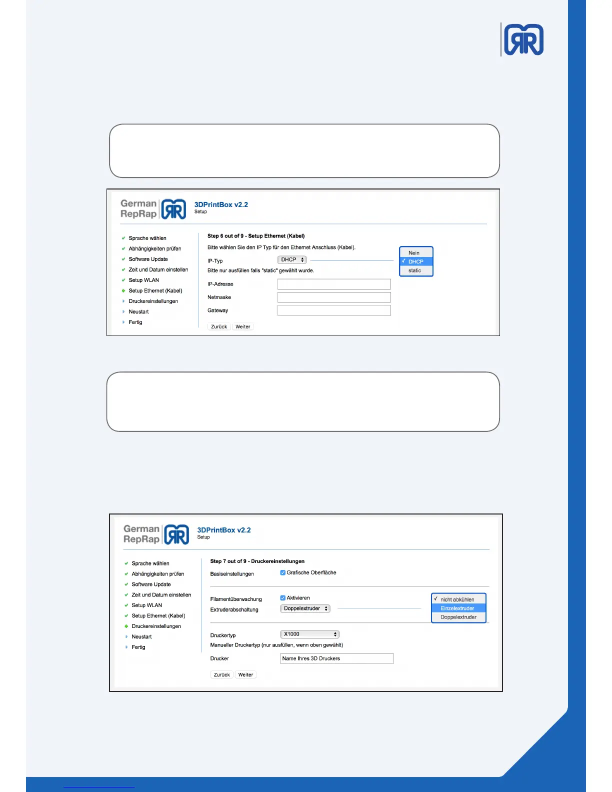 Here you can activate the checkboxes at “Grasche Oberäche” and “Filamentüberwachung”, depending on