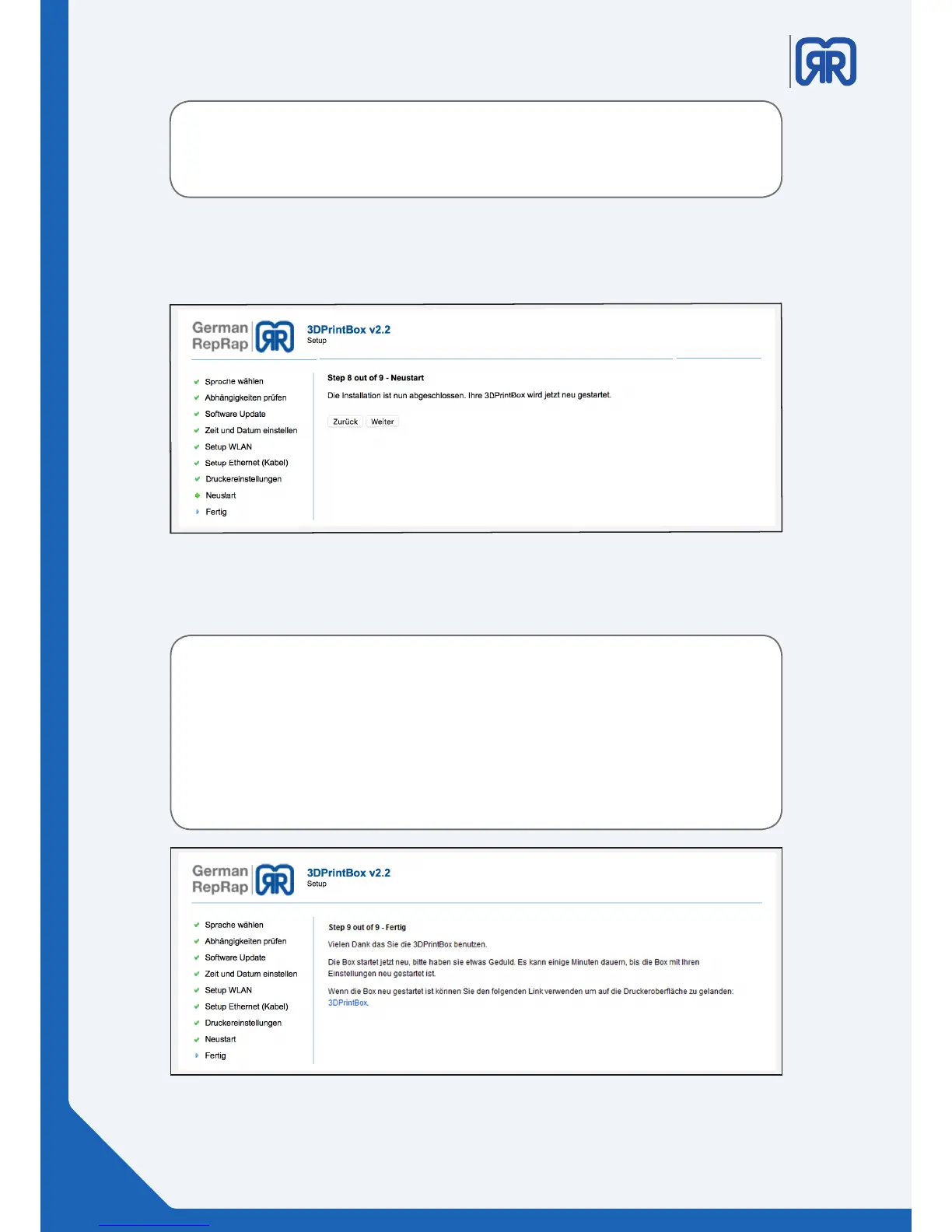 Conrm these settings by clicking on “weiter”. Your print box will reboot afterwards.