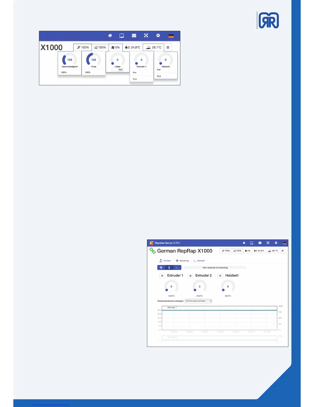 • Extruder: Here you can turn on your extruder and turn it o or control its temperature. In the register