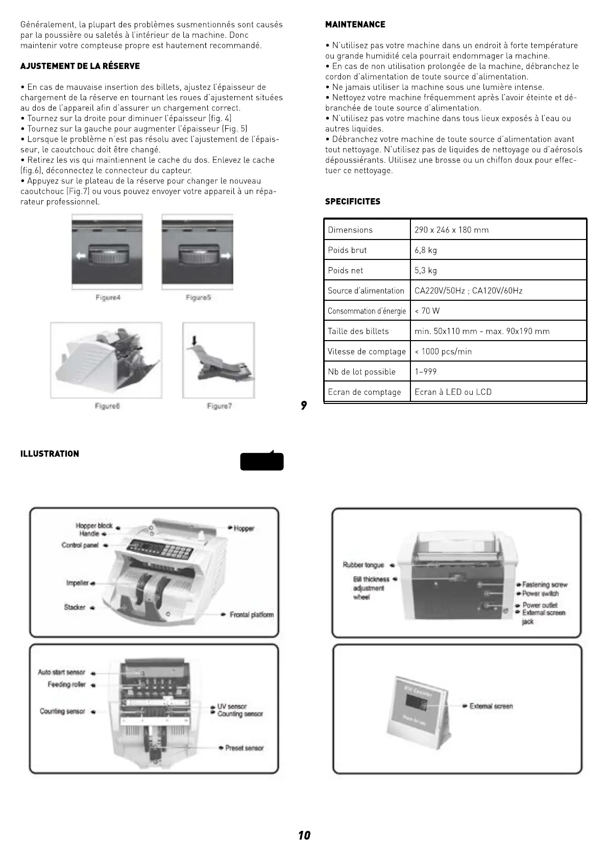 RESKAL LD80 - Hopper and Feeding Adjustment; Machine Maintenance and Cleaning; Technical Specifications