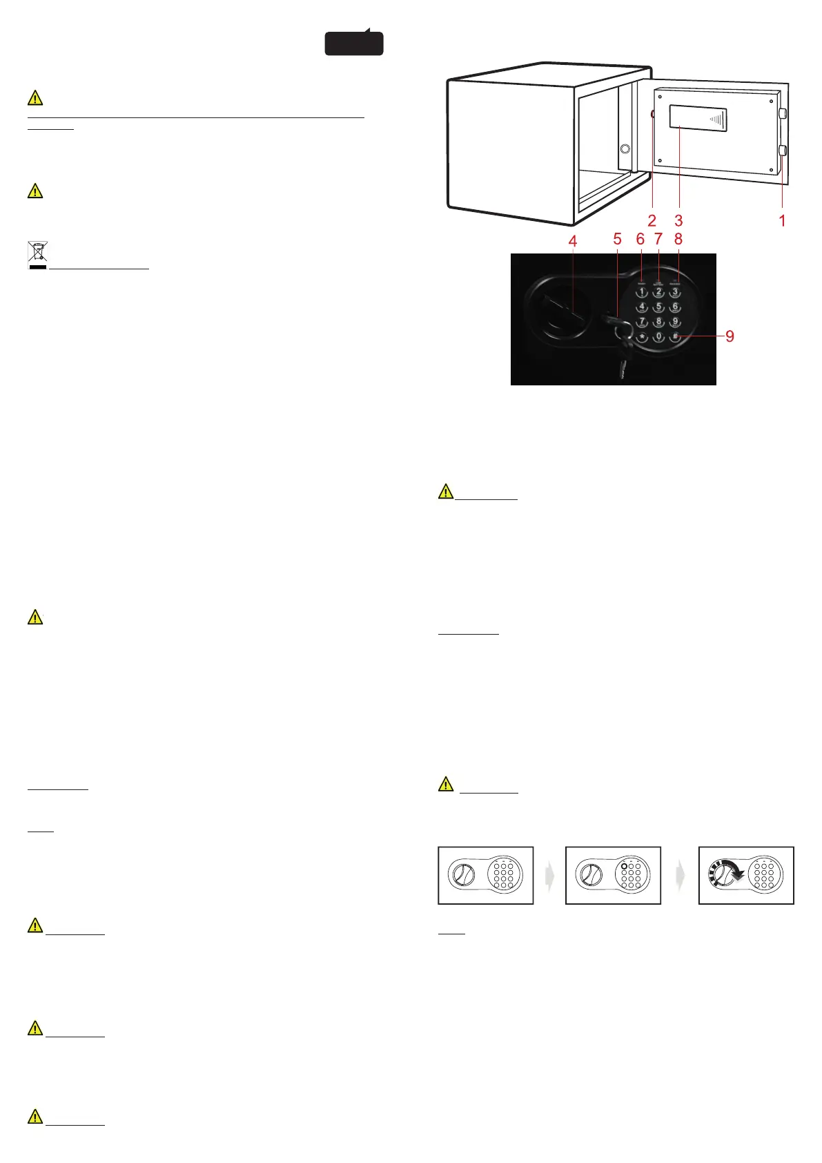 - No desmonte ni intente reparar usted mismo la caja fuerte. Podría dañar la