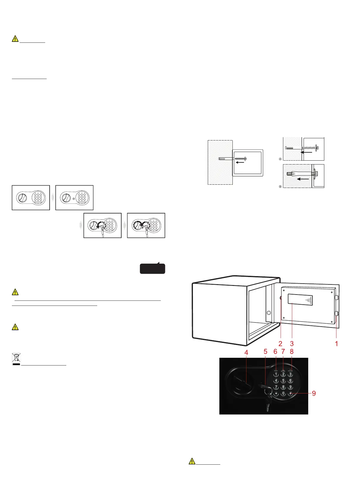 - Non smontare o provare a riparare autonomamente la cassaforte. Tale opera-