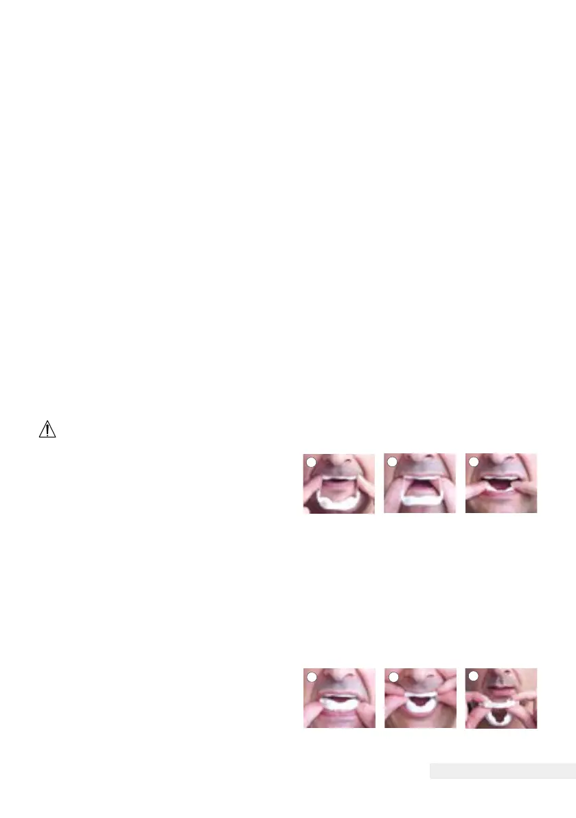 Ekki bíta í spelkuna til að setja hana á tennurnar. Ef það reynist erfitt að setja Narval CC tækið í skal