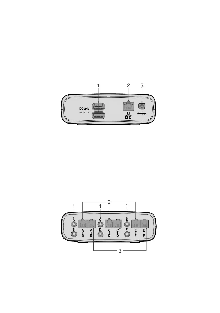 O TxLink 2 disponibiliza até seis saídas CC analógicas (de A a F), que podem ser usadas para conectar os