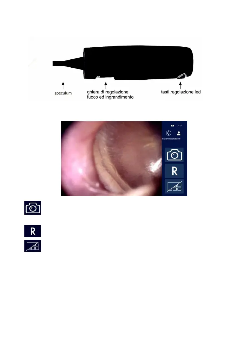 Inserire lentamente lo speculum nel condotto uditivo e regolare la ghiera fino ad ottenere una immagine