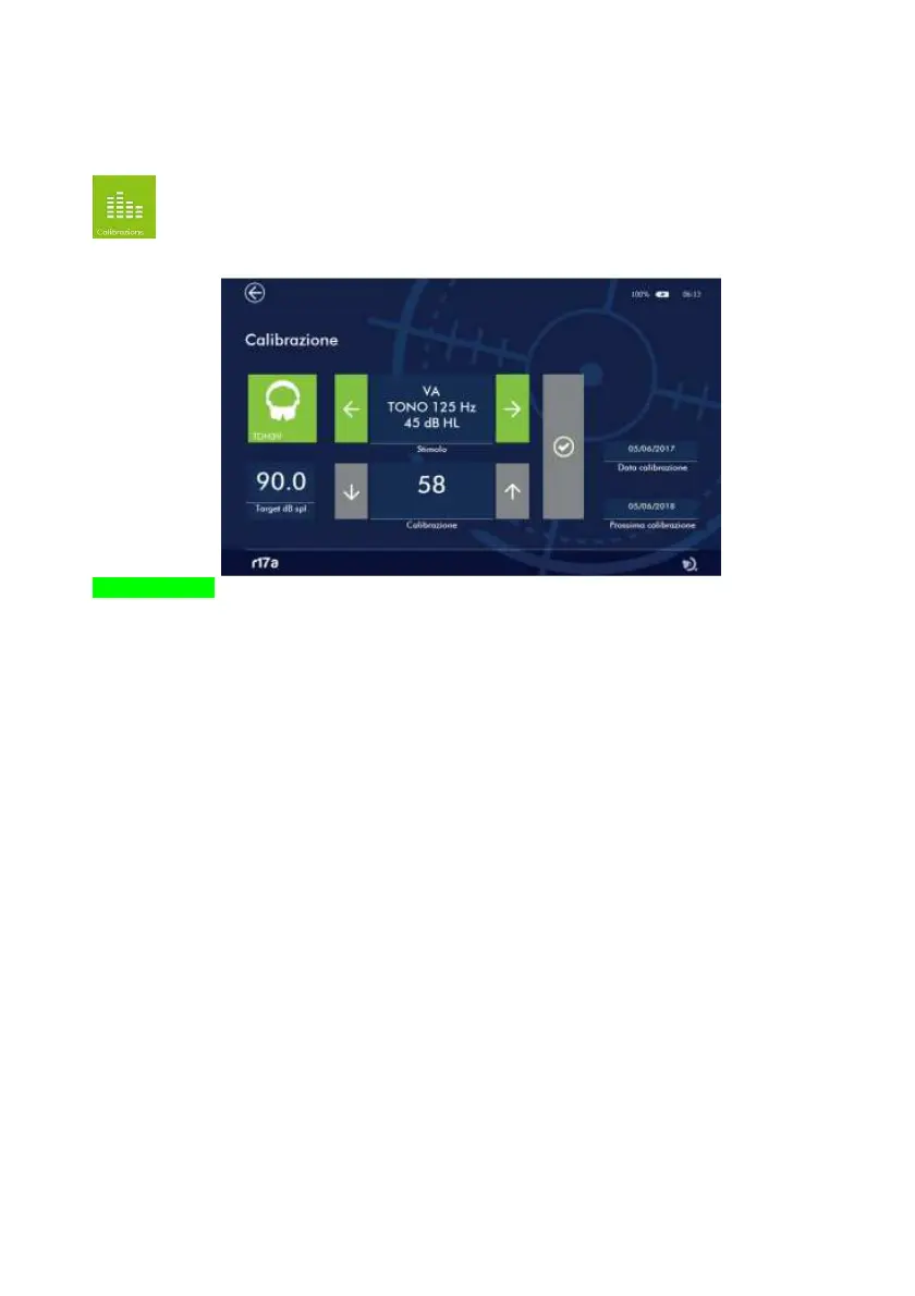 Entrando nel menu di setup Audiometry e premendo sul pulsante CALIBRAZIONE (vedi figura