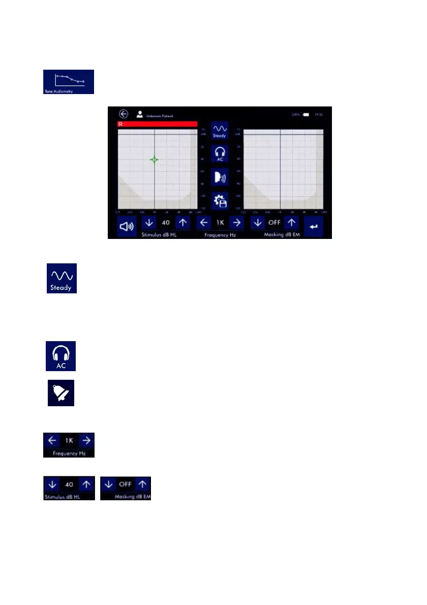Gently press directly on the audiogram to change the side of the stimulus: right/left. Masking will be