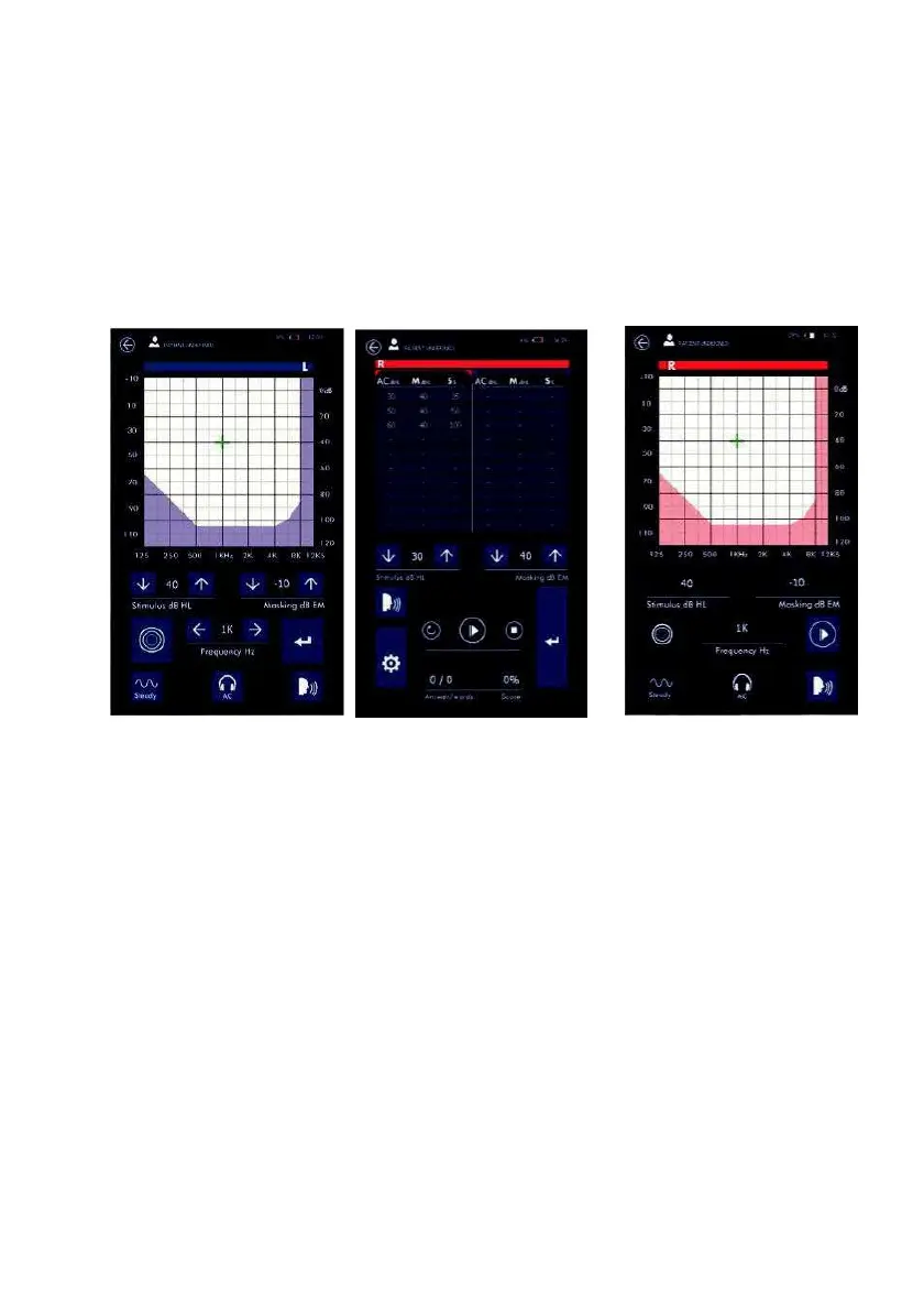 transducer selected in the test setup page (AC or BC). The selection of the side to work on (right or left) is