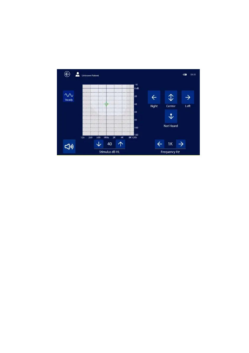 After placing the bone vibrator on the patient's forehead, select the desired stimulus and set a level that