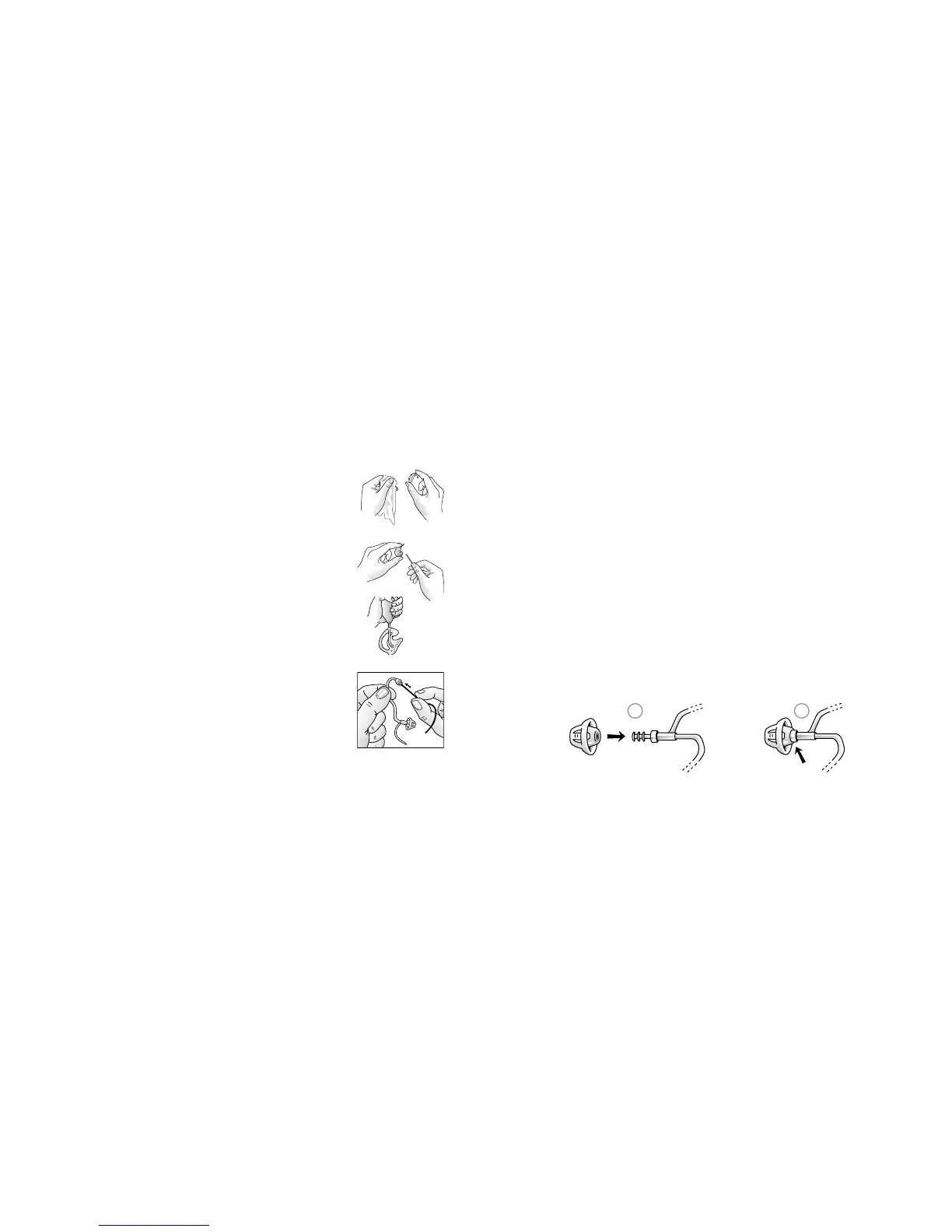 1. Remove the earmould and tubing from the metal power hook. Clean these as above.