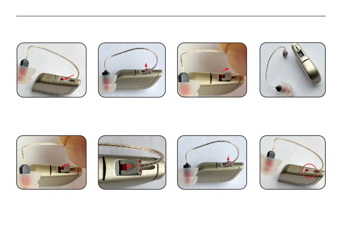 Connect a new receiver by sliding it into the HI as shown. Press to click it in place using e.g. a nger. Check that the rec is correct in place