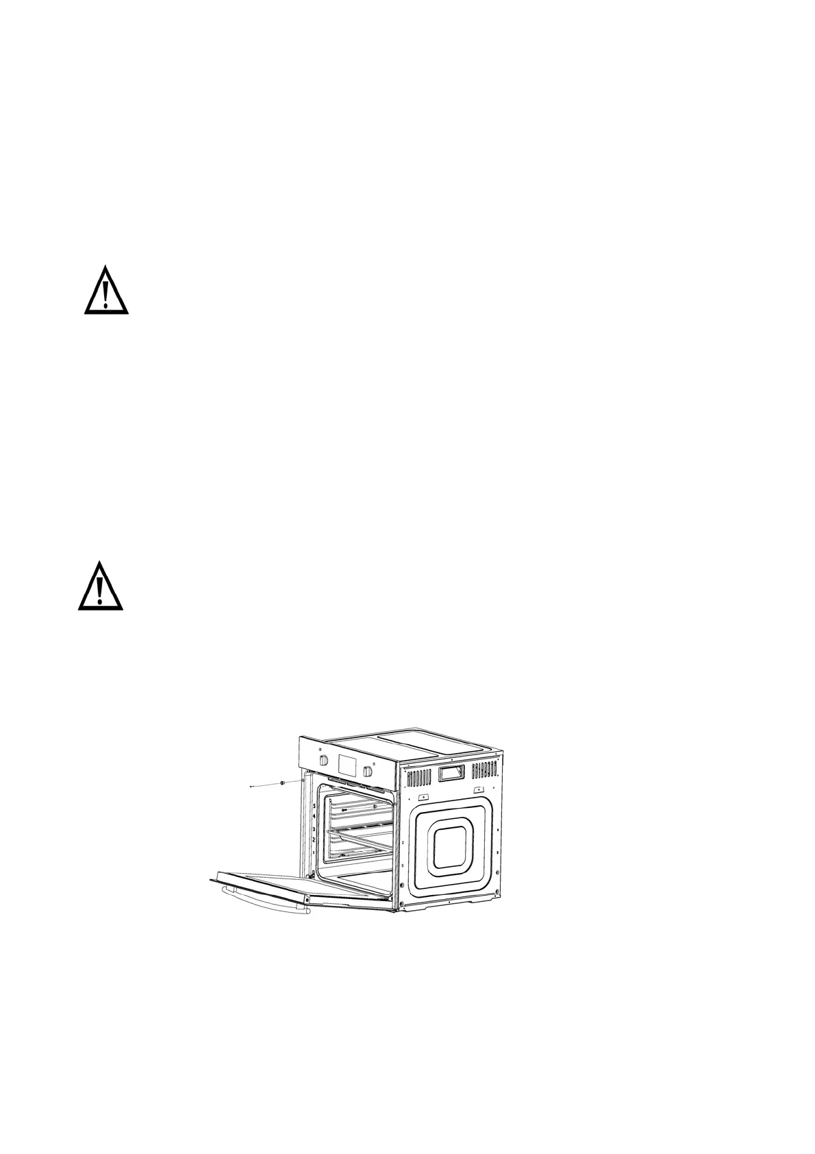 2、Fix your oven with the 2 screws and washers as indicated in the figure.