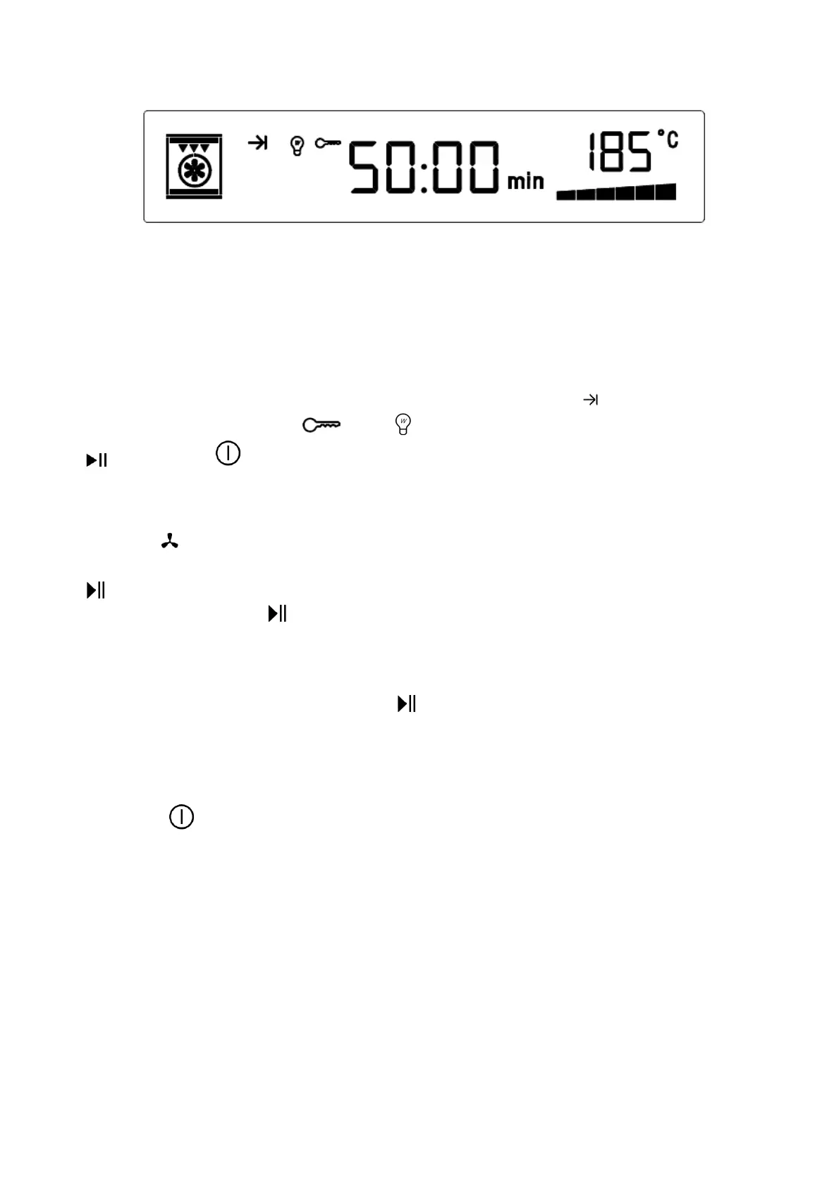“ ”under working status, lock and all element stop work(except oven lamp and fan), and