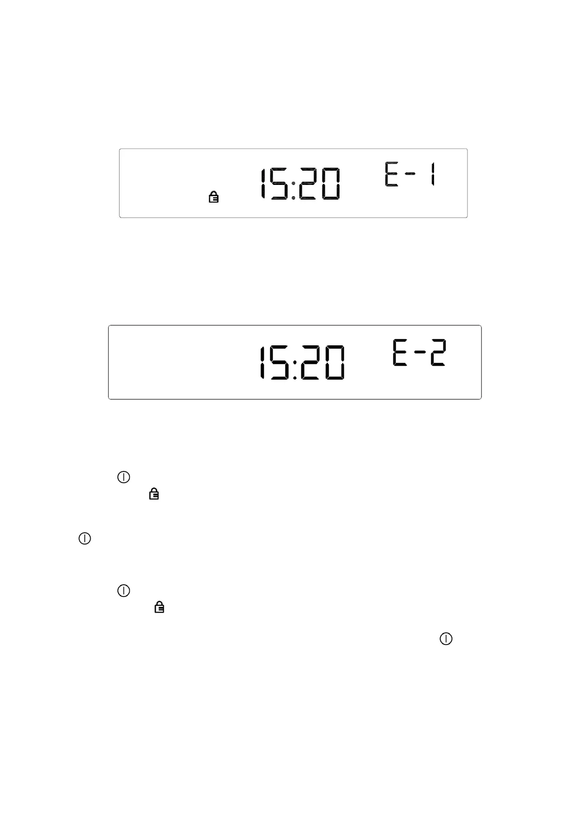 Power key“ ” will flash when the oven screen shows “E-1”, screen lock will relieve and