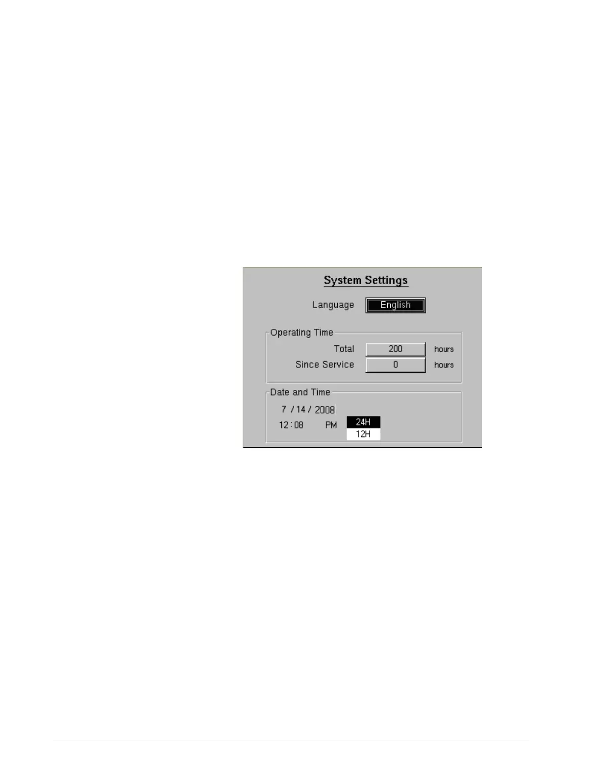 5.3 System Settings Use the System Settings screen (Figure 5-4) to select language, operating time