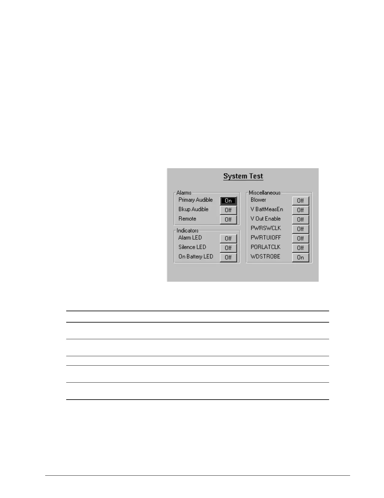 Table 5-2: System Test Screen: Miscellaneous Settings