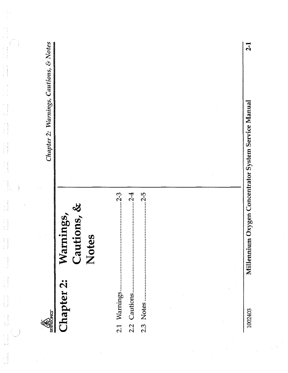 Respironics Millennium - Chapter 2: Warnings, Cautions, & Notes