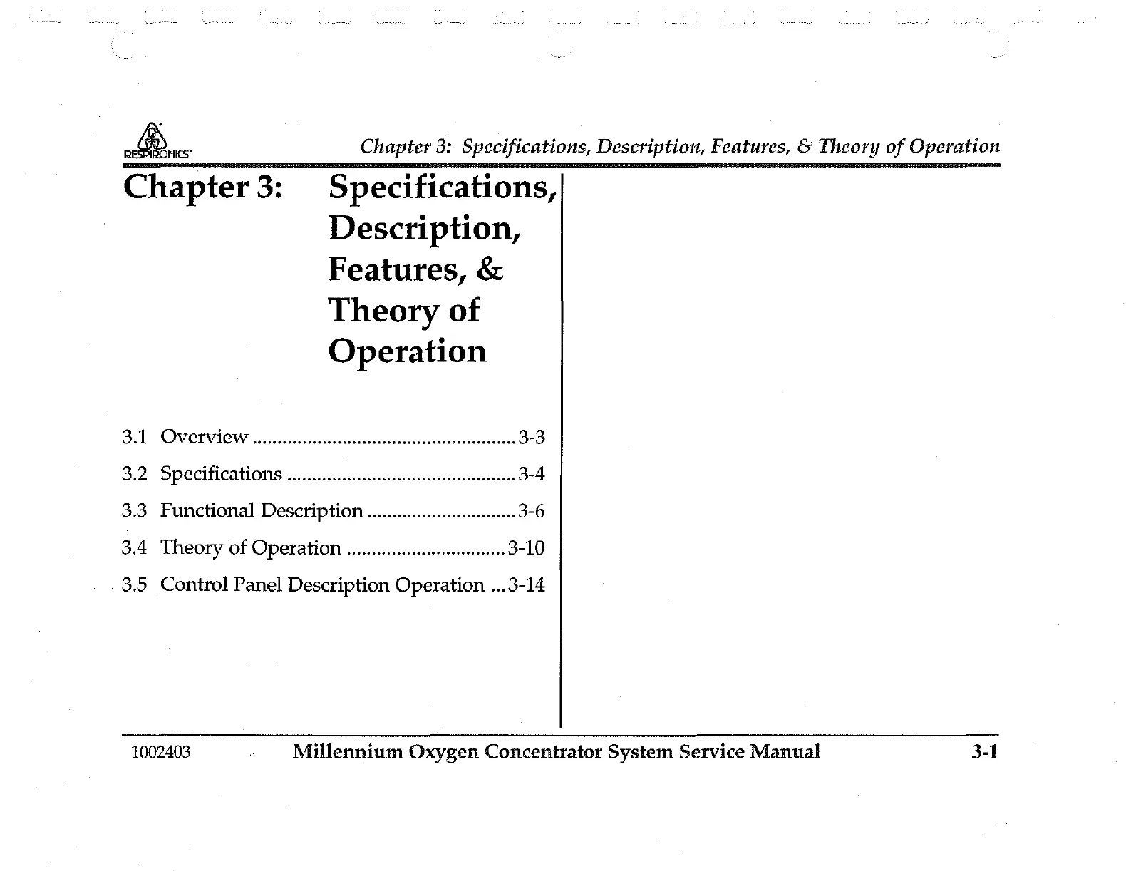 Respironics Millennium - Chapter 3: Specifications, Description, Features, & Theory of Operation