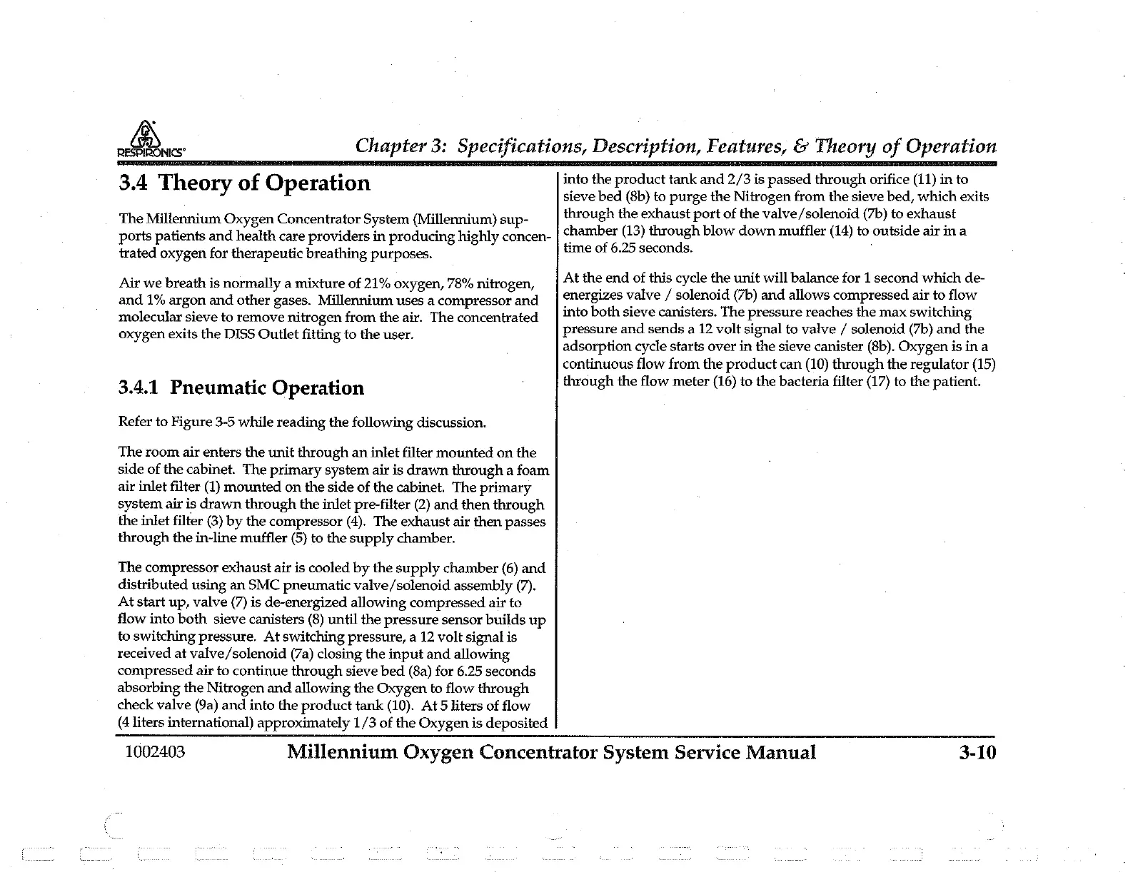 Respironics Millennium - 3.4 Theory of Operation; 3.4.1 Pneumatic Operation