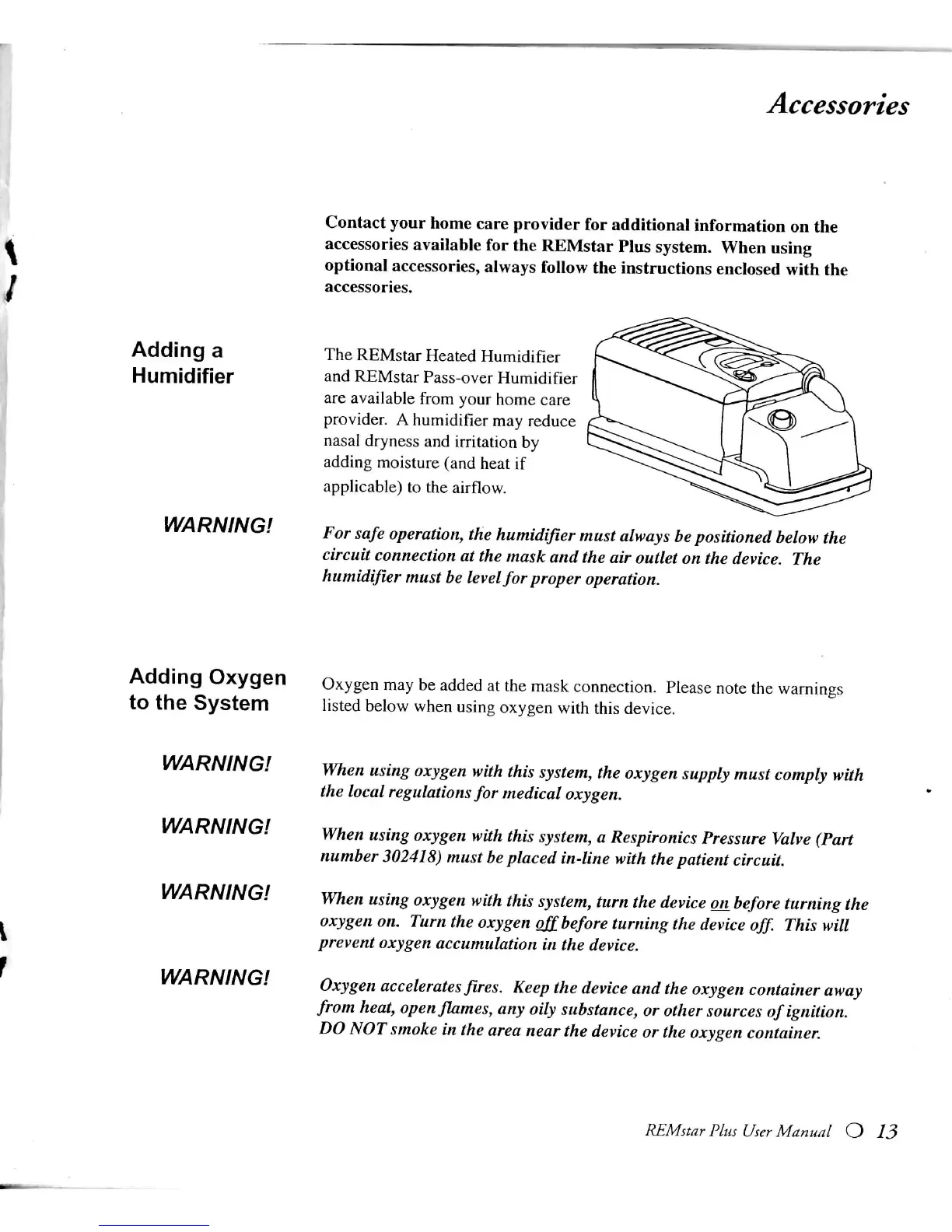 Oxygen accelerates fires. Keep the device and the oxygen container