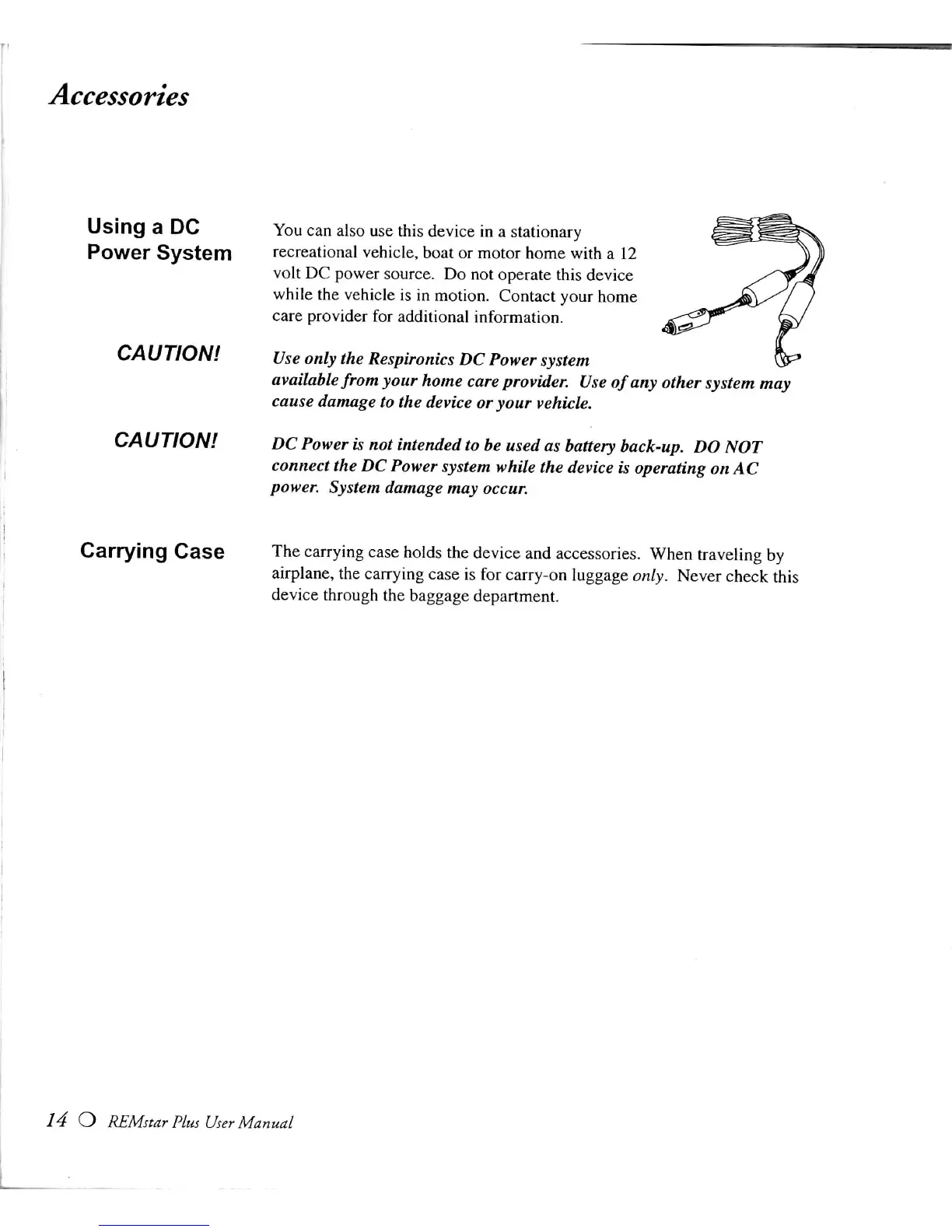 Respironics REMstar Plus - Using a DC Power System; Carrying Case Usage
