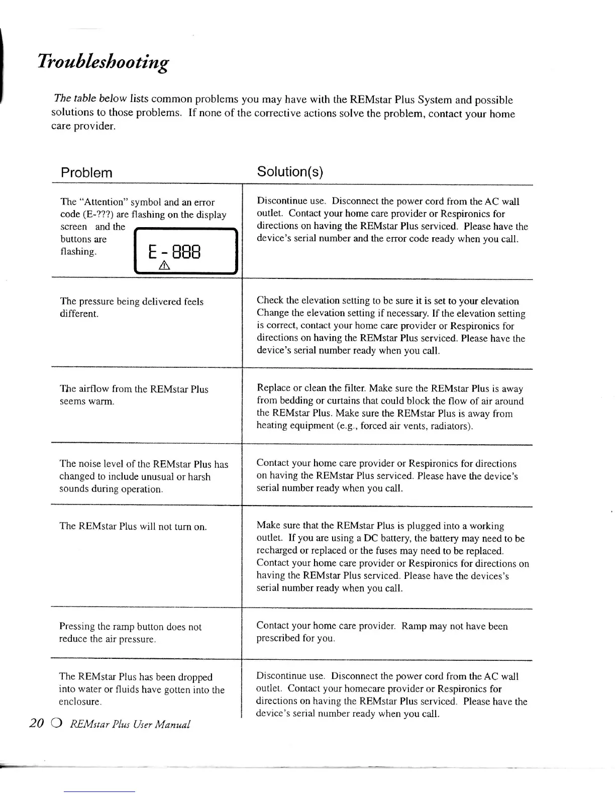 having the REMstar Plus serviced. Please have the device's