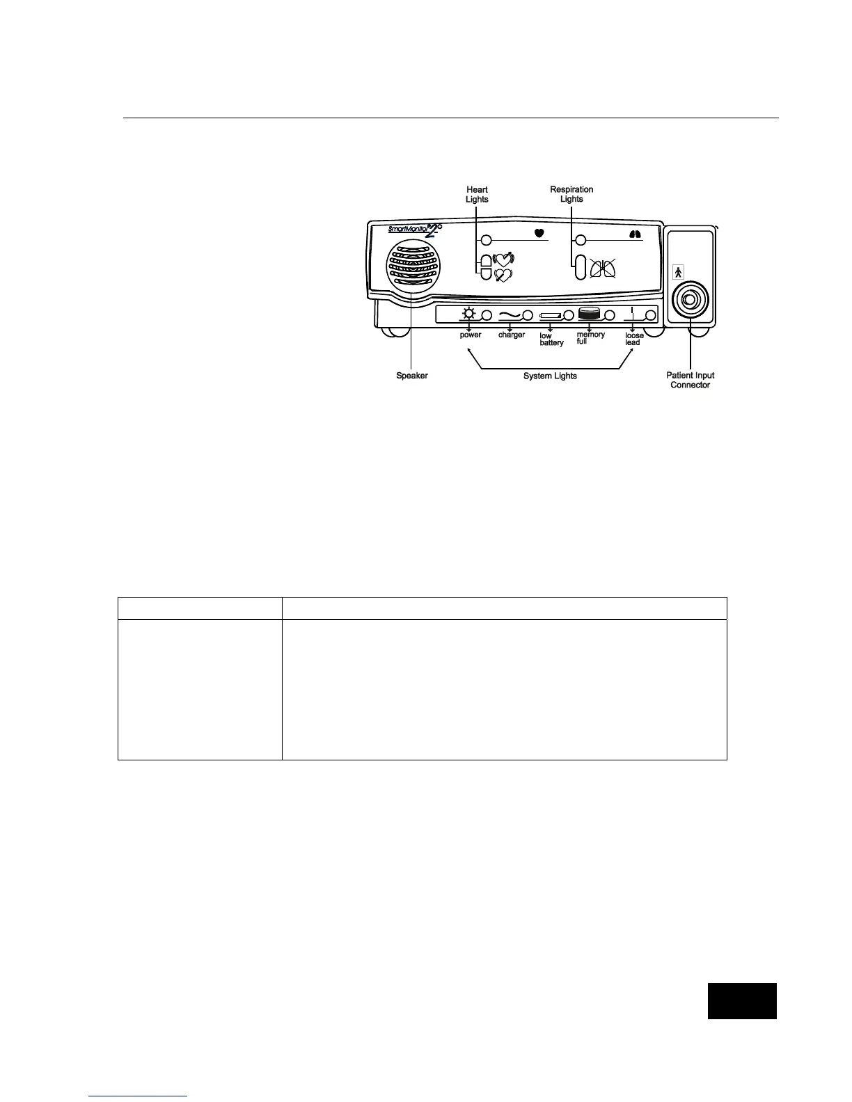 comes on when SmartMonitor 2 detects a heart rate lower than the limit set by the physician.