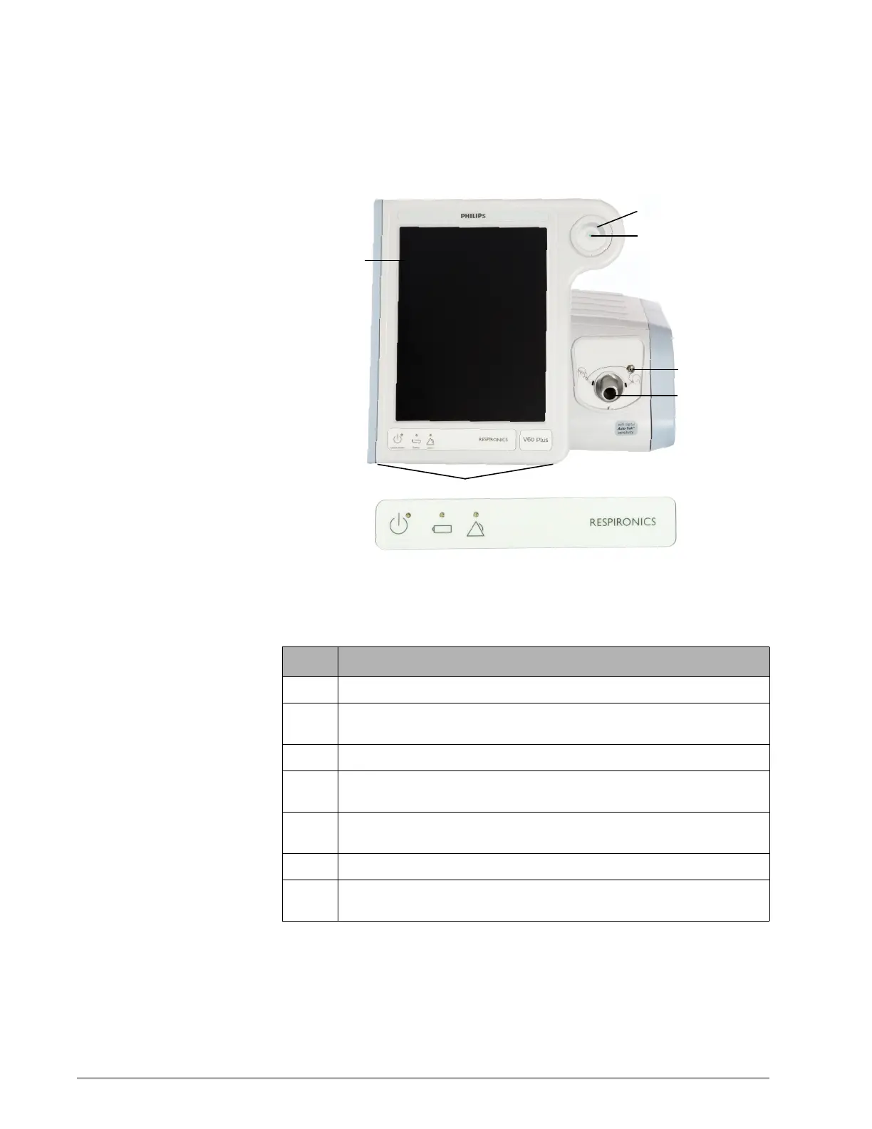 5 Ventilator outlet (To patient) port. Main connection for the patient circuit. Deliv-