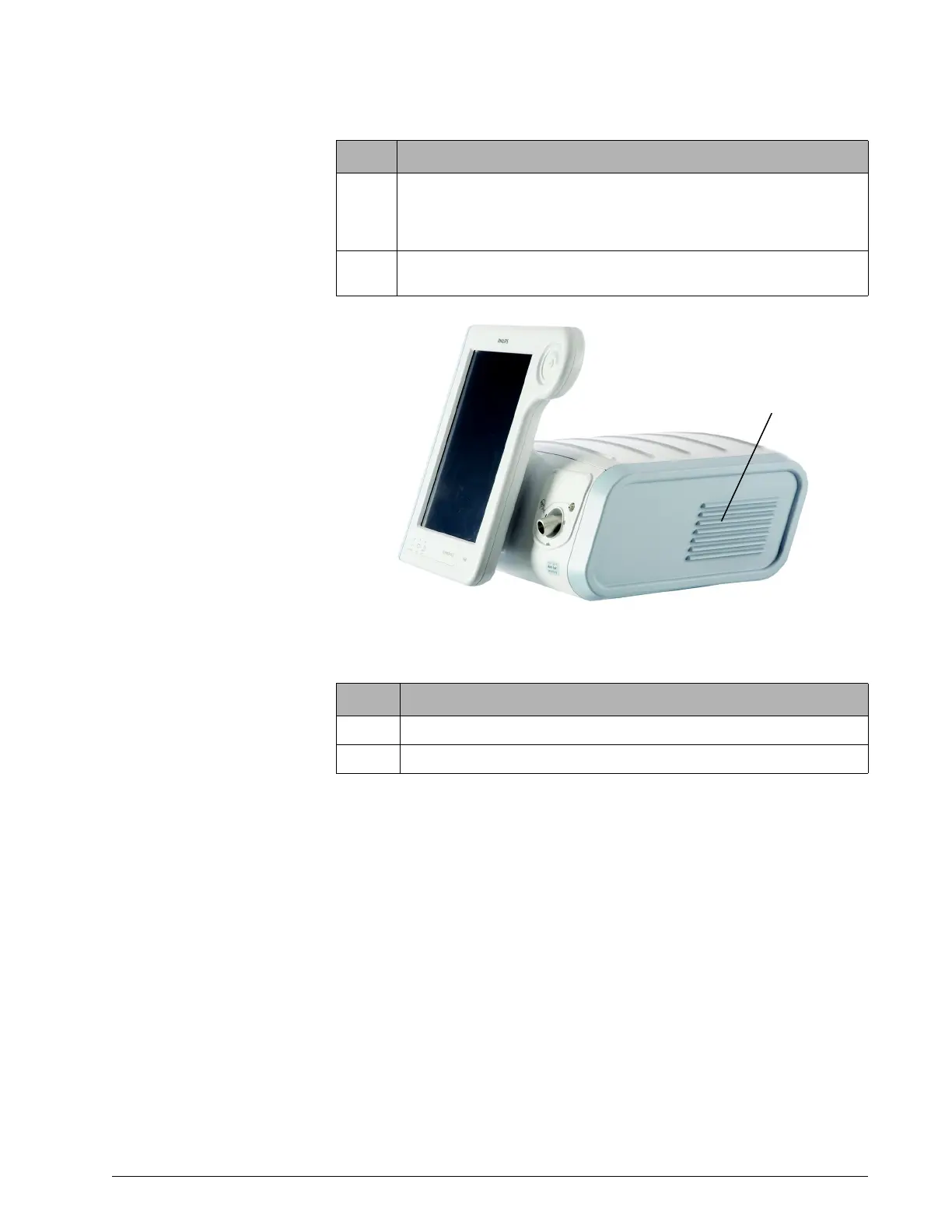 2 Air inlet filter (under side panel). Filters the air for delivery to the patient.