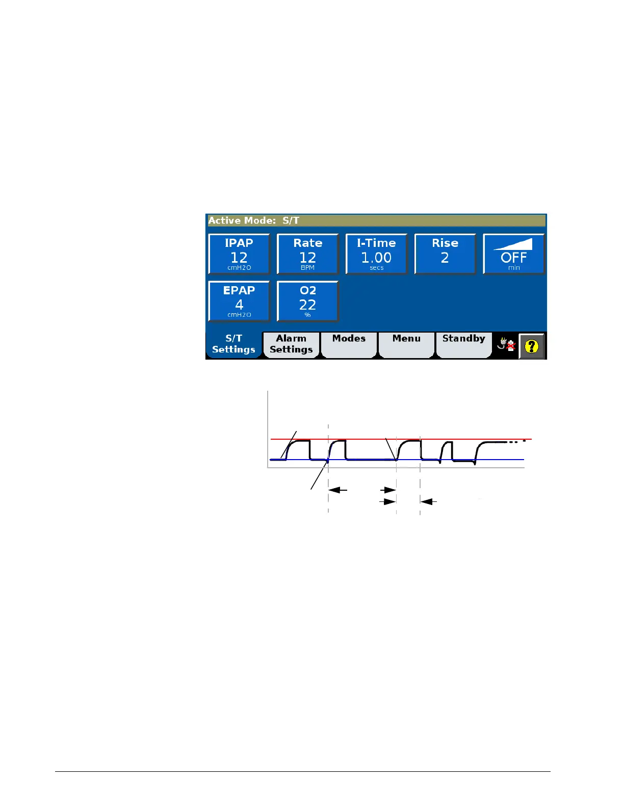 The S/T (spontaneous/timed) mode guarantees breath delivery at the user-set