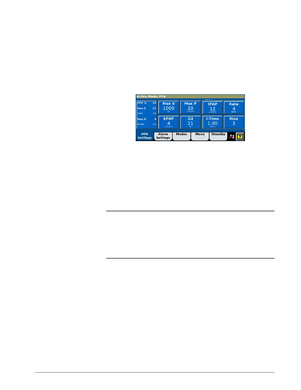 WARNING: To prevent the delivery of excessive pressure or volume, set the PPV