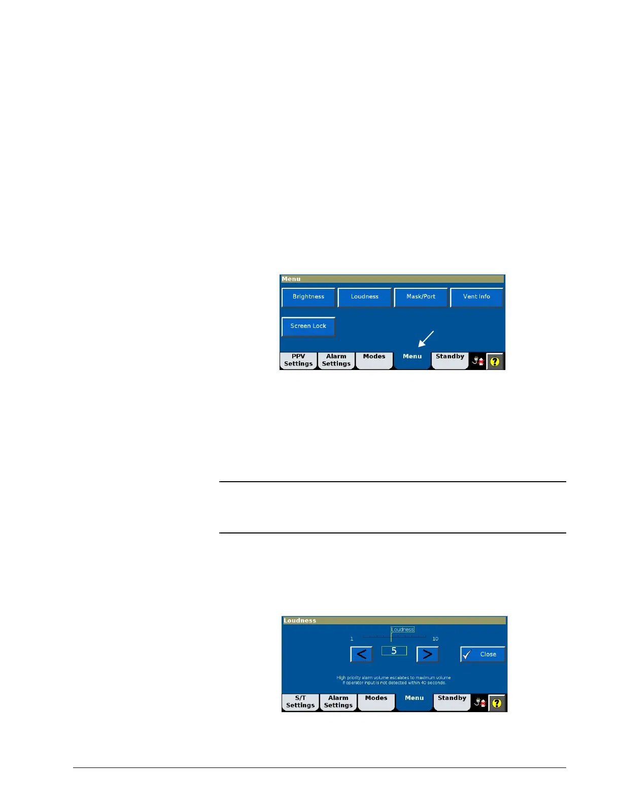 Use Loudness to adjust the volume of the alarm and touchscreen audible