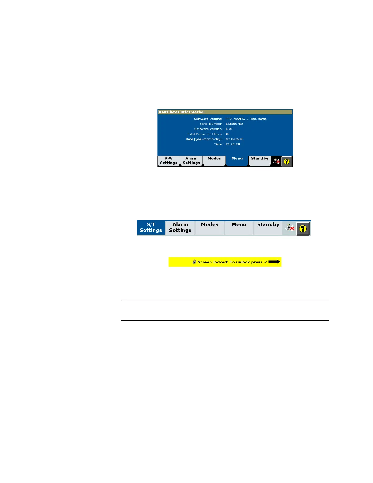 Screen Lock deactivates all buttons and tabs on the touchscreen except Alarm