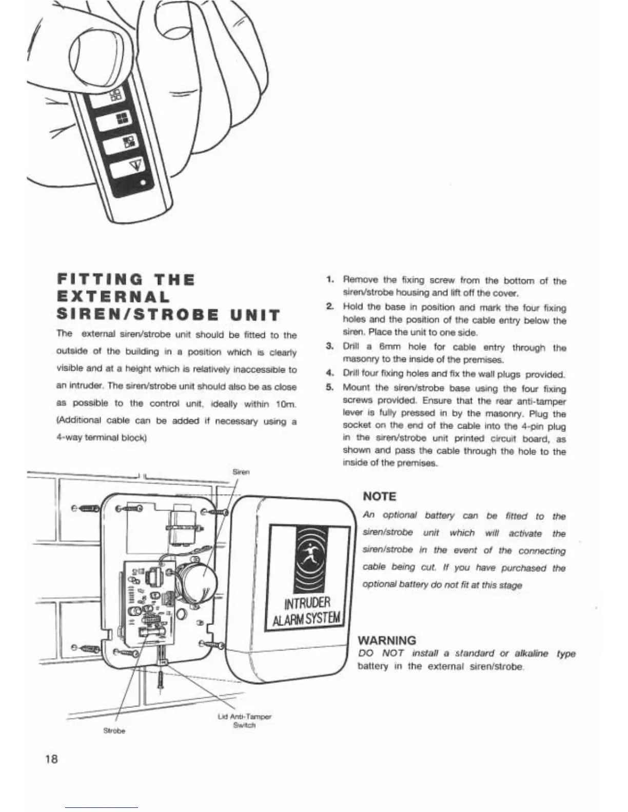 Response Electronics RE 3000 - Fitting the External Siren;Strobe Unit; Siren;Strobe Unit Installation