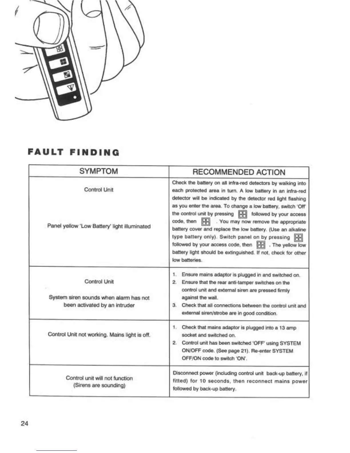 Response Electronics RE 3000 - Fault Finding and Troubleshooting; Low Battery Warning Resolution; Addressing False Alarms; Restoring Unit Power