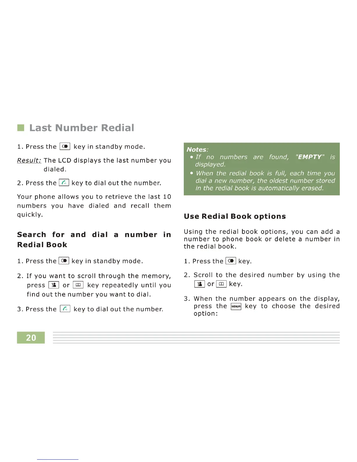 Response CL3622B - Last Number Redial; Array